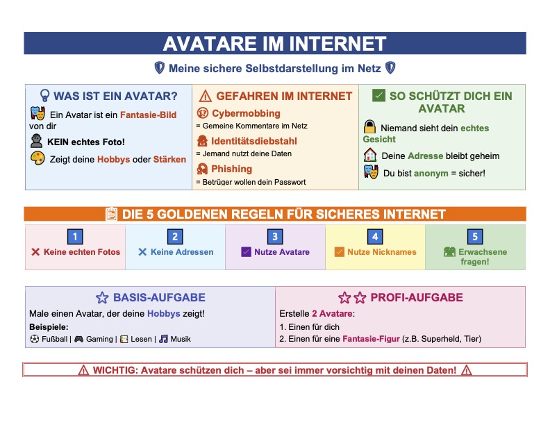 📋 Lernplakat „Avatare im Internet“ für Klasse 5